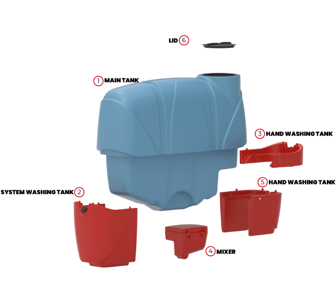 Manufactured using polyethylene raw material, the CARISMA V2 SERIES is the improved model of the CARISMA series. It consists of a main tank, a system washing tank, a hand washing tank, and an agitator. Agitator protection is included.