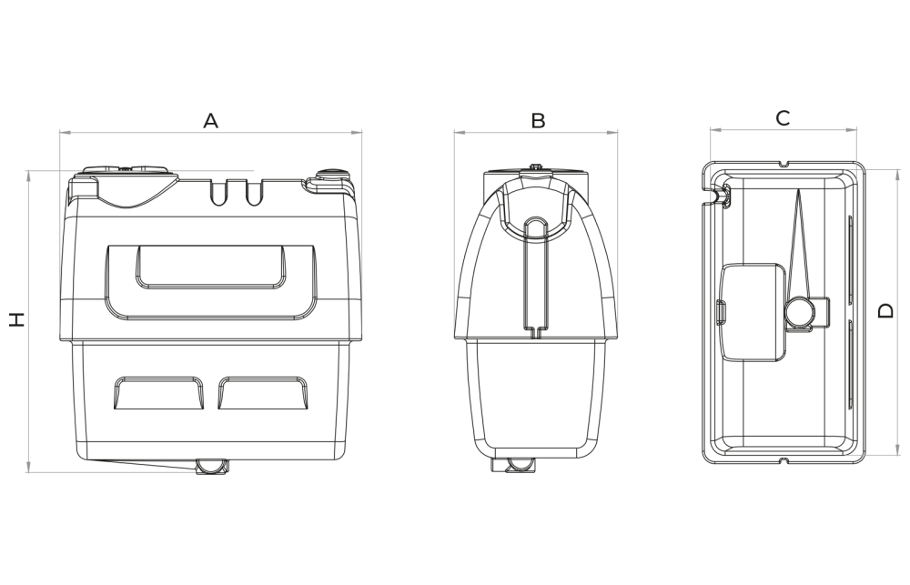 | 1000 L | 1450 mm | 790 mm | 1350 mm |