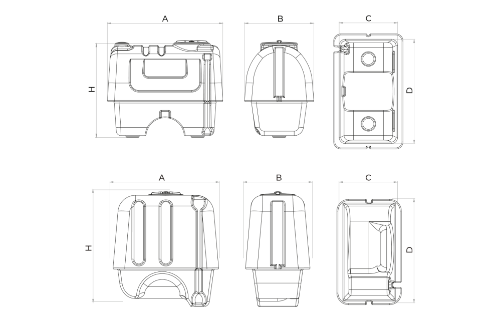 | 200 L | 890 mm | 550 mm | 730 mm |