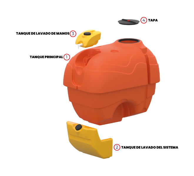 La SERIE COMBO, fabricada con materia prima de polietileno, consta de un tanque principal, un tanque de lavado del sistema y un tanque de lavado de manos. El diseño ha sido desarrollado para ser totalmente adecuado para un uso cómodo y eficiente por parte del operador.
