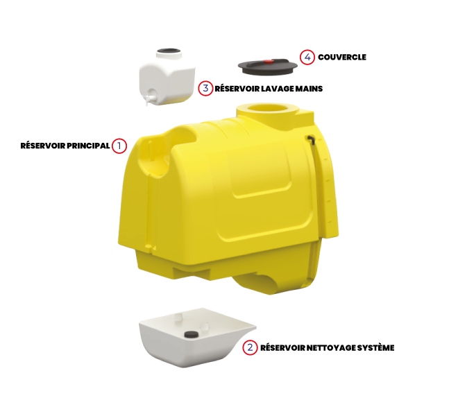 La SÉRIE TRIO, fabriquée en polyéthylène, se compose d’un réservoir principal, d’un réservoir de nettoyage du système et d’un réservoir lavage mains.